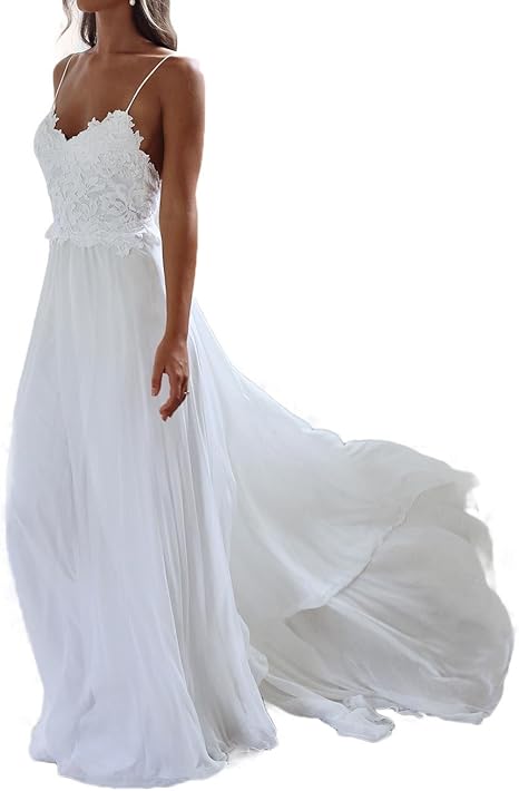 Details About White Empire Spaghetti Lace Beach Wedding Dresses Open Back Bridal Gown Hot Sexy