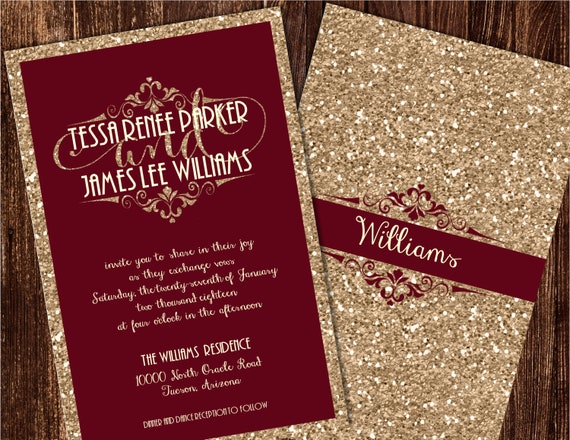 Burgundy And Gold Wedding Invitation Burgundy And Gold Glitter Wedding Invitation Modern Wedding Invitation Gold Silver Rose Gold Red Burgundy
