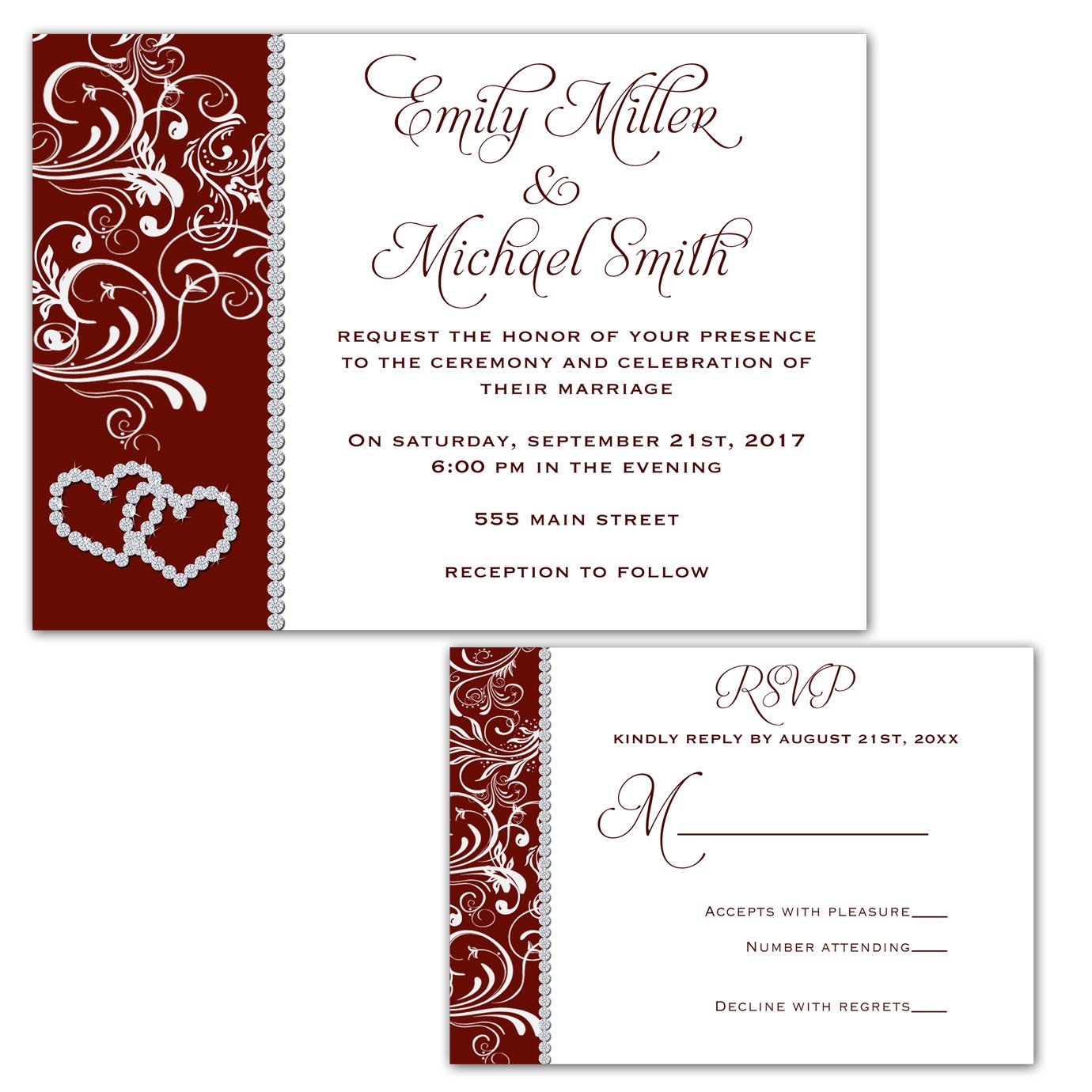 Marsala Wedding Invitations And Self Mailing Rsvp Cards Includes Envelopes For Set Burgundy Wedding Invitations