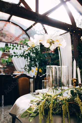Wedding Decor Of Tables On The Island Of Santorini In Gold