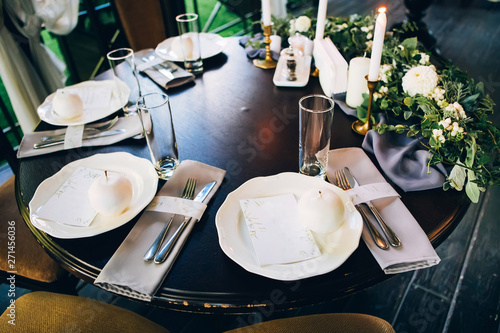 Wedding Decor For Elegant Table Setup In Gold And Blue