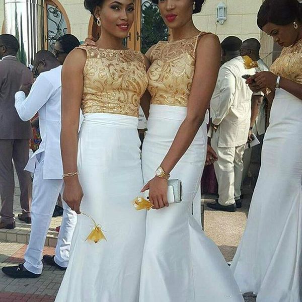 Mermaid Evening Dress Aso Ebe Style Gold Lace Applique Top White Ankara Bridal Gowns Floor Length Guest Outfits African Bridesmaid Dresses Evening
