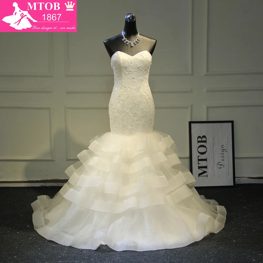 Designer Sexy Mermaid Lace Wedding Dress Sweetheart Layered Skirt Long Chapel Train Vestido De Noiva Robe De Mariee Mtob1797 December 2019