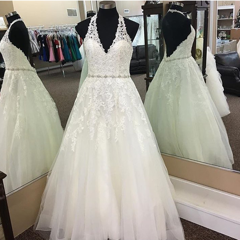 Halter Neck Long White Wedding Dress With Lace Boutique
