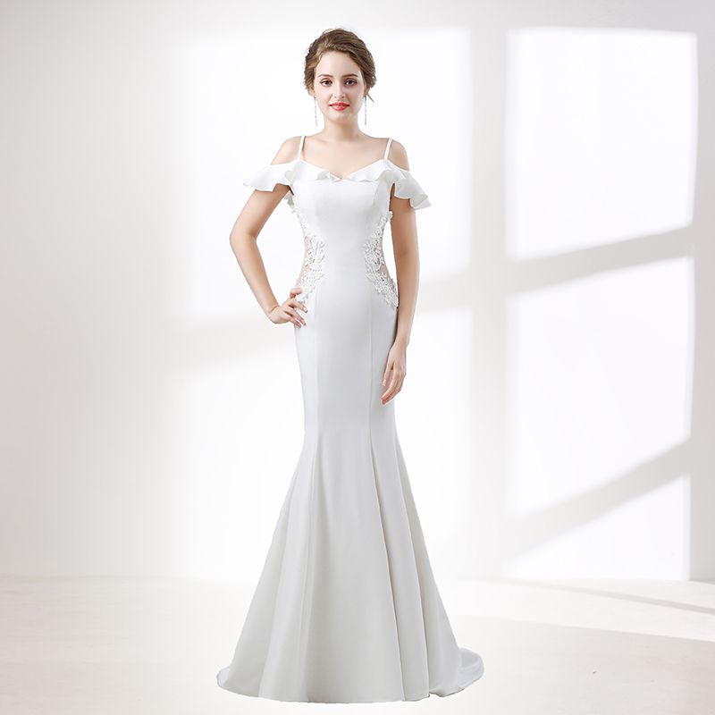 Pure White Prom Dress Knit Lace Lotus Leaf Shoulder Spaghetti Party Dress Evening Dress Long Prom Dresses Under 200 Modern Prom Dresses From