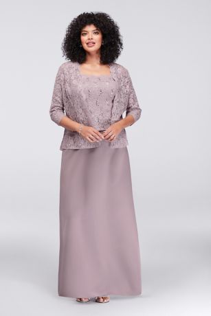Satin Plus Size Jacket Dress With Lace Overlay David S Bridal