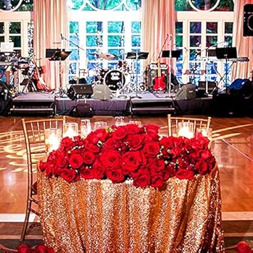 Soardream Sequin Tablecloth Rose Gold Sparkly Table Overlays For Party Wedding Decor 50 Inch Round