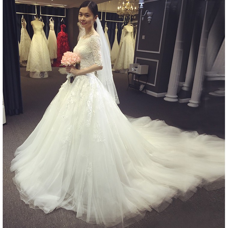 New Style Lace 3 Quarter Wedding Dress Korean Style Simple