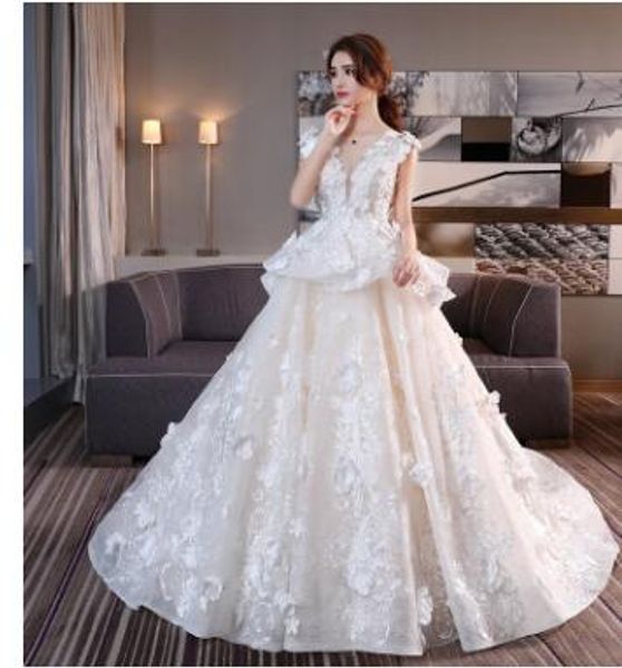 The New 2019 Winter Wedding Dress Korean Fashion Bride Bra Qi Marriage Was Thin Lace Flowers Free Shipping