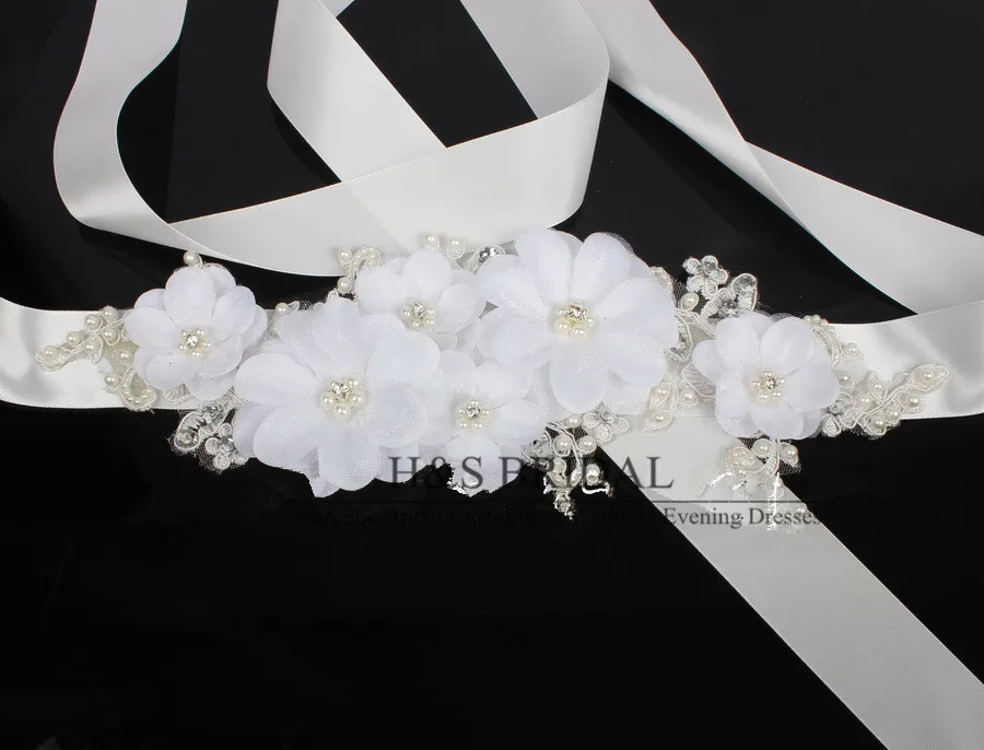 White Lace Pearl Satin Sash Belt Bridal Maternity Sash Belt Wedding Dress Belt Bridesmaids Flower Girl