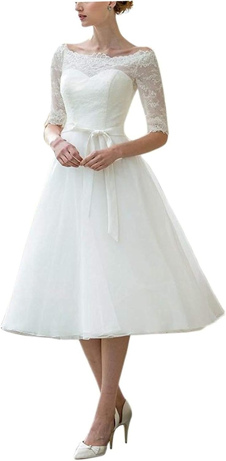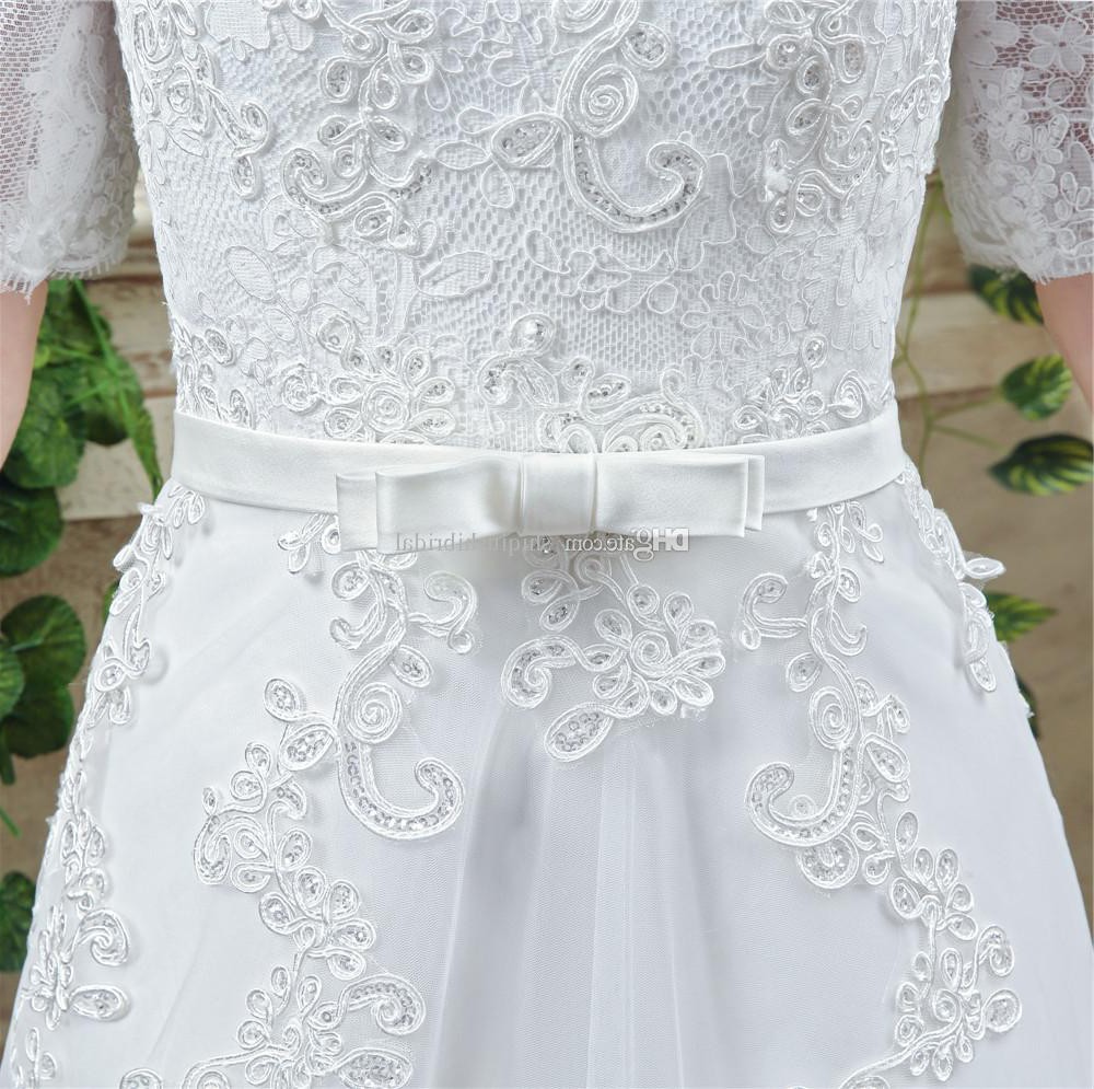 H S D Tea Length Wedding Dress Lace Bridal Dress Belt
