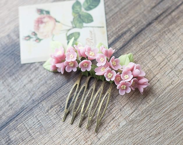 Amazon Com Pink Flower Hair Comb Bridal Hairpiece