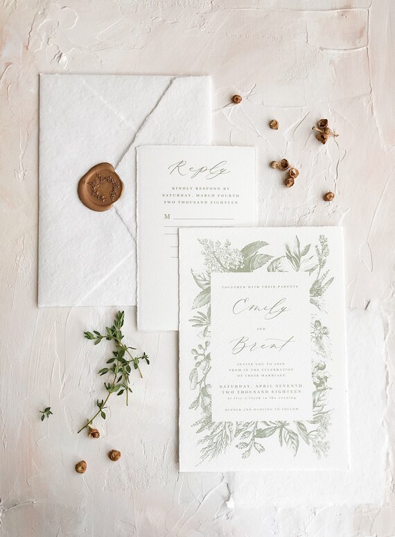 Wedding Invitation Romantic Calligraphy Invitation Dusty