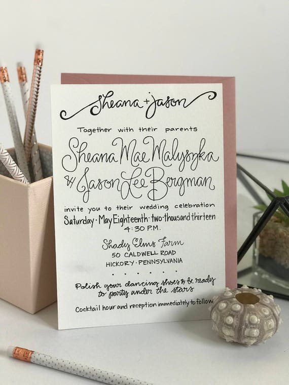 Calligraphy Wedding Invitation Modern Calligraphy Wedding Etsy