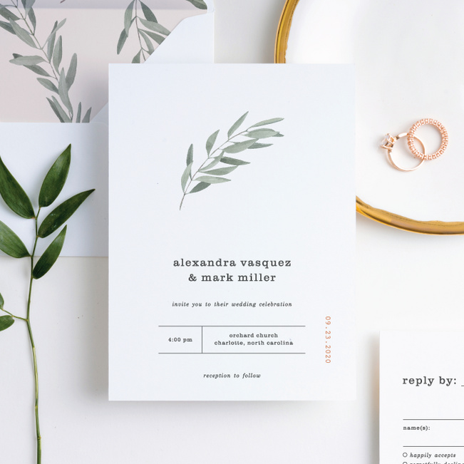 Little Wreath Customizable Foil Pressed Wedding Invitations In Gold Or White By Phrosne Ras